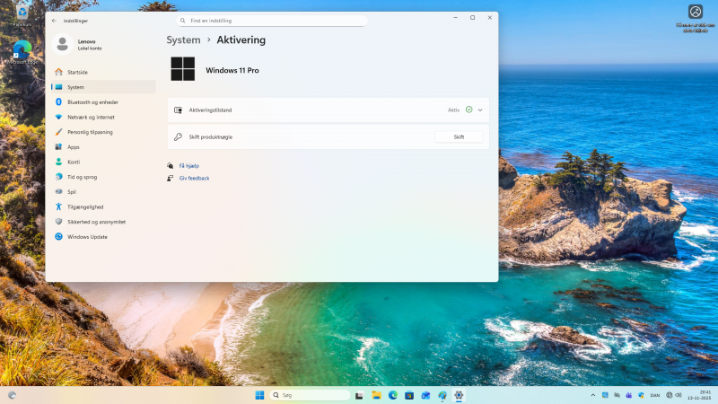 Windows 11 Pro er installeret, opdateret og aktiveret