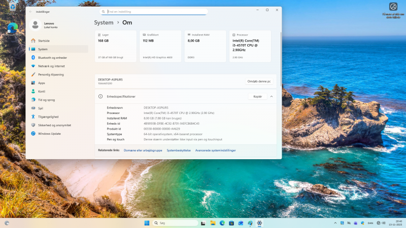 - Intel Core i5-4570T (2 kerner / 4 tråde, op til 3.6 GHz)