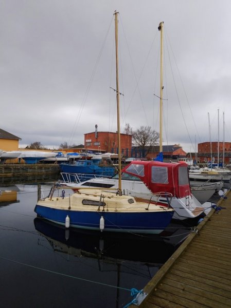 Båden fik den helt store omgang forrige år (se billedet på land, taget lige før jeg blev færdig), og den har ligget urørt i vandet siden.