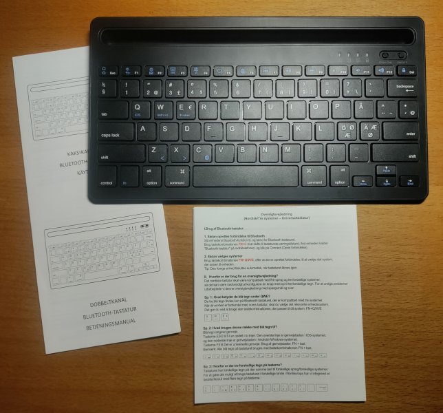 Blutooth tastatur med omskifter til 2 enheder som det kan styre ved at skifte imellem dem på tastatur