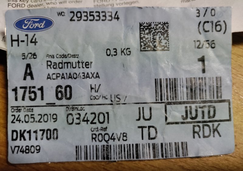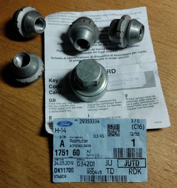 Ford låsemøtrikker originale købt hos Bøje Brøchner i Vejle for 740,- kr