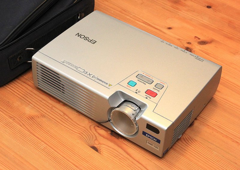 Bærbar EPSON EMP-720 LCD-projektor, har 1500 Ansi-lumen, en kontrast på 400:1 og en XGA 1024 x 768-opløsning.