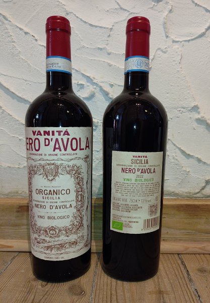 Dejlig, økologisk vin, som er lavet på håndplukkede druer, dyrket på Sicilien og lagret i 6 måneder – 50% på eg og 50% på rustfrit stål.