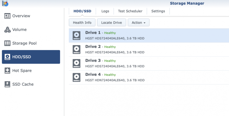 Synology DS412+ 4 Bay med 4 stk HGST Deskstar 7K4000 HDS724040ALE640 HGST Server/NAS 24/7, 7200rpm diske SATA III 6.0Gb/s