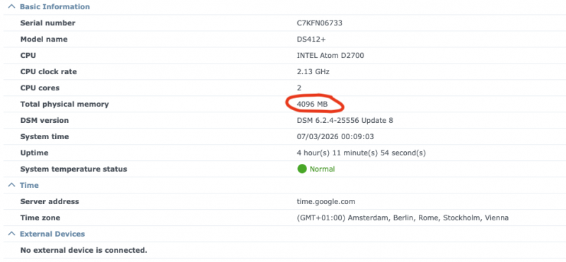 Alt I I tip top stand, NAS er opgraderet til 4GB Ram.