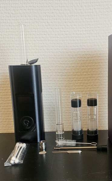 Lades op med usb-c (medfølger ikke) og er nem at have med på farten. Der følger lidt degummiseret hampefibre med hvis du foretrækker at dampe solide urter.